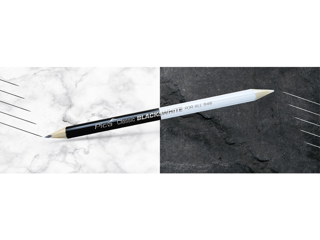 - bílá strana tužky: vysoce kvalitní obarvená tuha vhodná pro značení tmavých materiálů